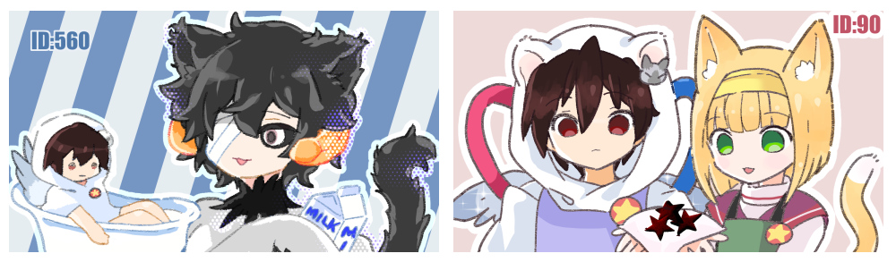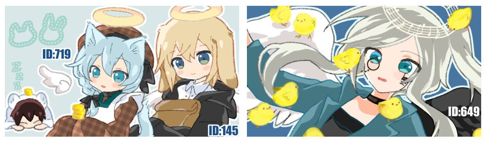 ID145:熾天使ヒヨリくん、ID355:しゃとりちゃん…ピロのお絵描きをありがとうございます!!めっちゃかわいいーーーー