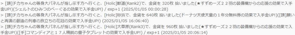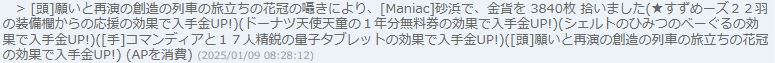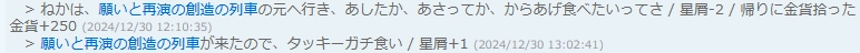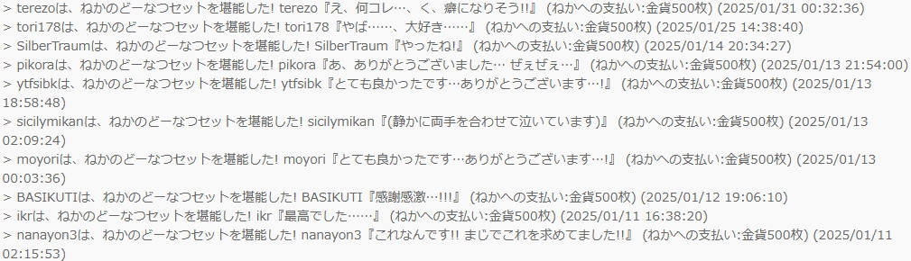 > yuniuniが、声援として金貨 100枚を ねかに贈りました (2025/02/22 17:42:08)