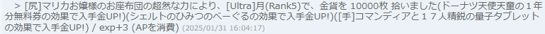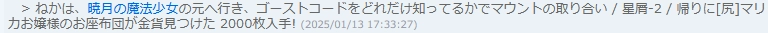 > karyuuranbuが、声援として金貨 100枚を ねかに贈りました (2025/01/23 12:08:52)