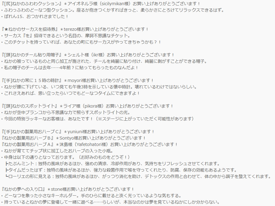 > moyoriが、声援として金貨 100枚を ねかに贈りました (2024/12/31 01:18:00)