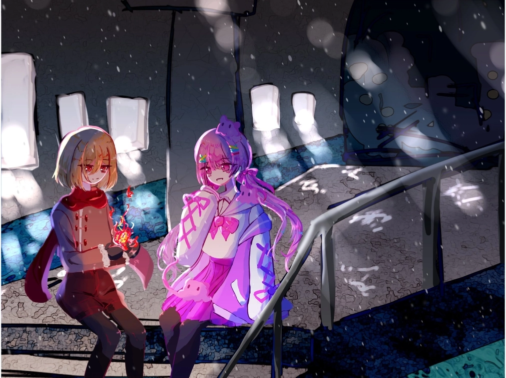 生い立ち:今年こそは吸血をしたいと思いながら家族を探す異星人のミウミウと、いつか確実に殺す為に白銀の聖人を探すセチアという少女の二人。世界を渡り、異界を旅し、場所と対話し、今は二人で迷子中。雪の降りしきるプールの様な場所で、今はふたりぼっちを分かち合っている。