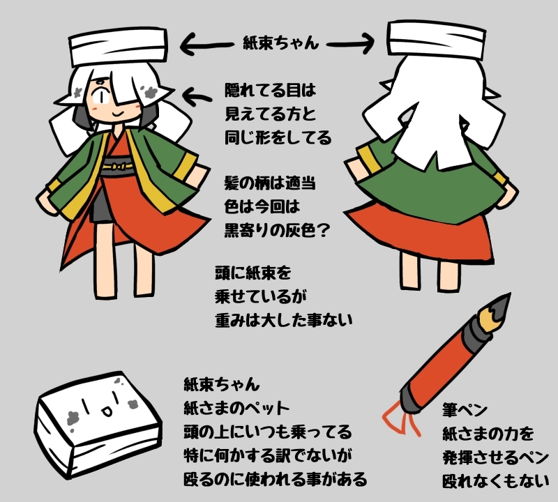 紙に描いた絵に魂を宿し動かす力を持つ紙の神。一人称が和紙だが何故そうなるかは不明。