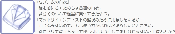 せっかく白衣まできたのに監視すべきマッドサイエンティストがしんでて正直にこにこしている。