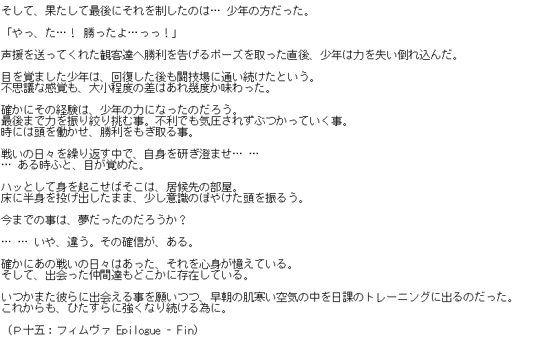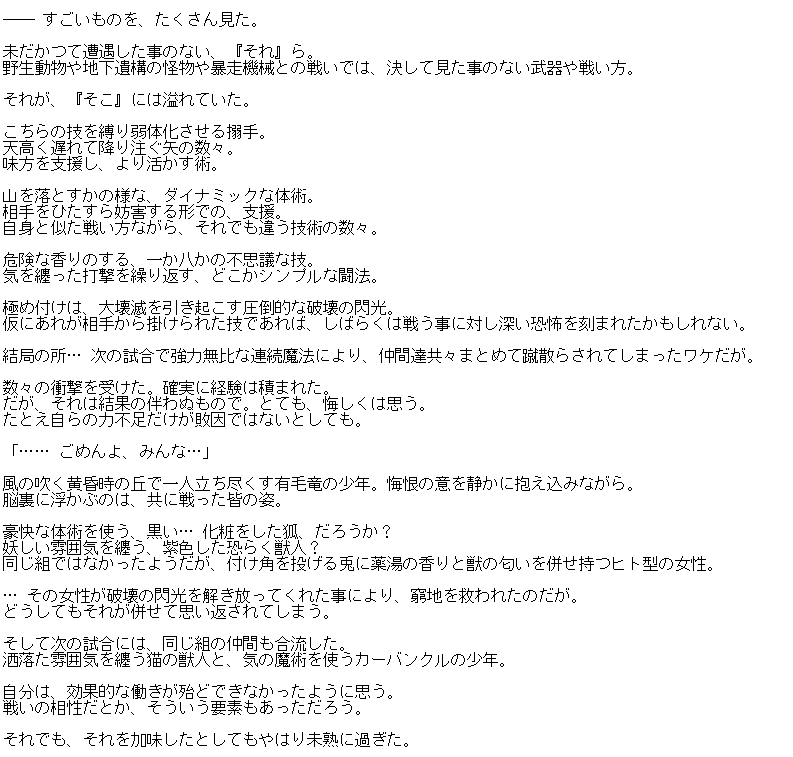 戦い方は違えど師になる人物もおり、充実した日々を送る。それなりに楽しくやっているようだ。