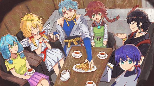 チームGGDにクッキーを振舞っているイラスト(なお、クッキーは特別美味くも不味くも無いくらいかも?)