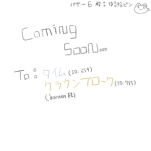 kisaragi905さん、kirishima96さん、rrriirさん、geppakuさん、horunnさん、omatsuuuuuさん、Jivrasiaさん、ryuukaさん、kalanchoeさん、trtofuさん、peckflowerさん、pikoraさんサービスありがとうございます!