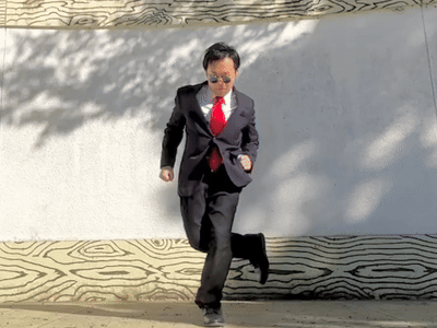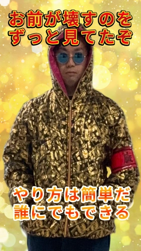 ハイスピード3Dアクションゲームみたいなポーズのゴールドちんねん