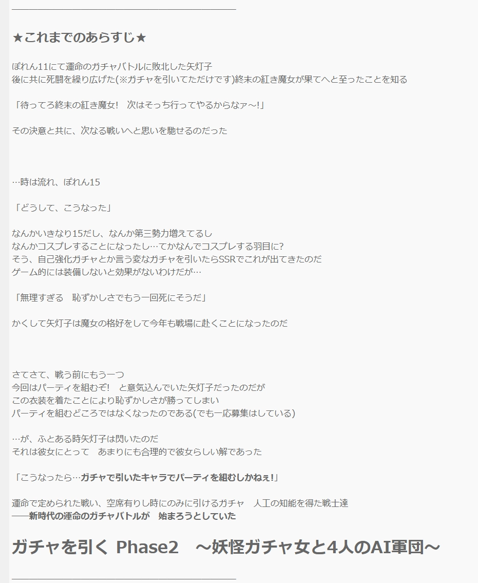 生い立ち:自己強化ガチャとかいう怪しいガチャからSSRが出たと思ったら衣装も変わるヤツだった 私にコスプレとか似合わねぇんだって!!! てかこの服でパーティを組めと!? 無理だわ! なあガチャで出たキャラで編成していいか!?