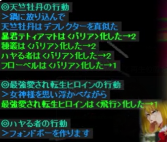 女子作戦会議中の様子 ……私は確かパンの材料を買いに行ってたわね========