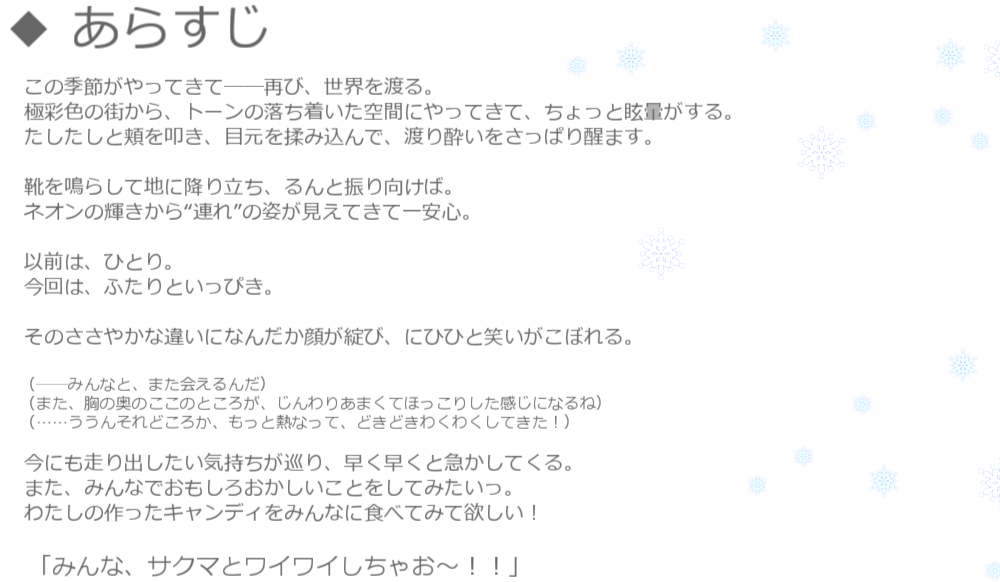 それでねそれでね、わたしは飴を作るチカラをもってるのね。だからー、わたしは飴のお土産を売ってるんだ!
