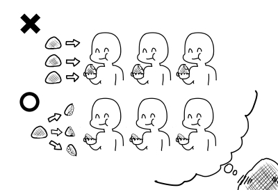 生い立ち:大人数に同時に食べられたい欲求を持っている意識の高い焼きおにぎり。