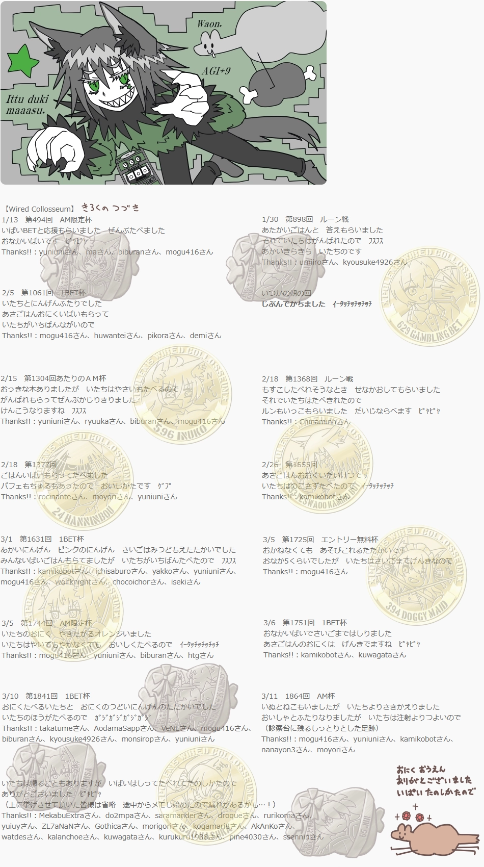 【声援ありがとうございます!】(※2/2頃までのログを反映)