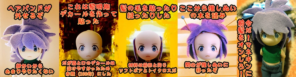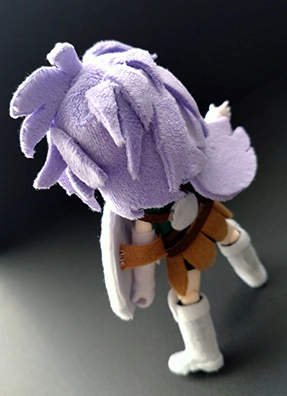 前作のすがたと比較!実はこの時点で並行して作ってました。マジックテープでつながった後ろ髪を外してショートヘアにできたり角度をずらしたりできます。STヘアバンドも縫いましたが…