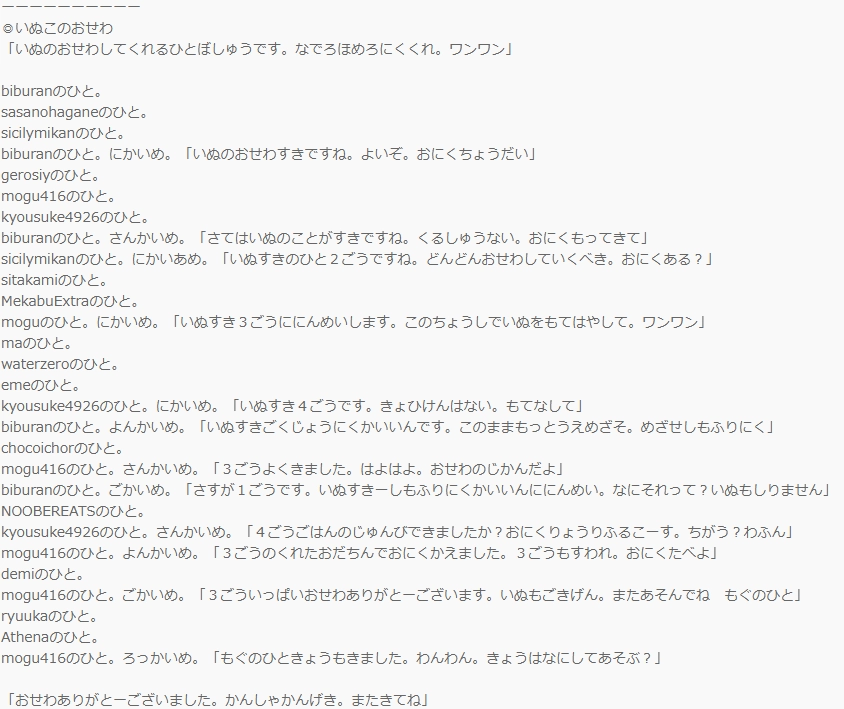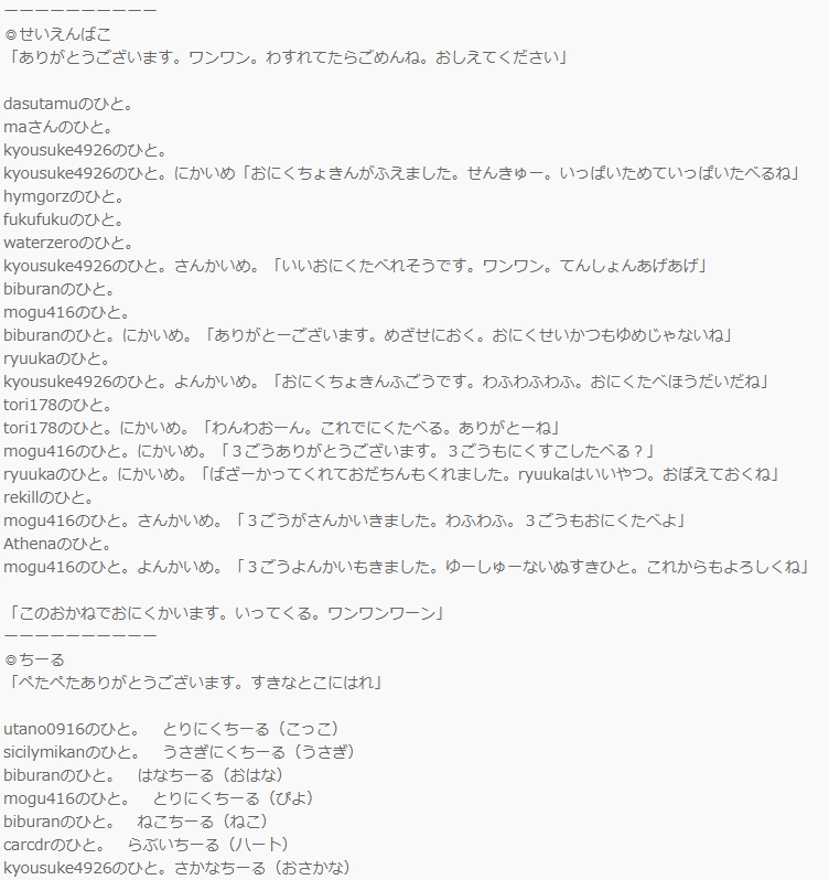 「これすごいです。すーーーっごいにく。てつかえない?いぬがたべさせたげる。ワンワン」