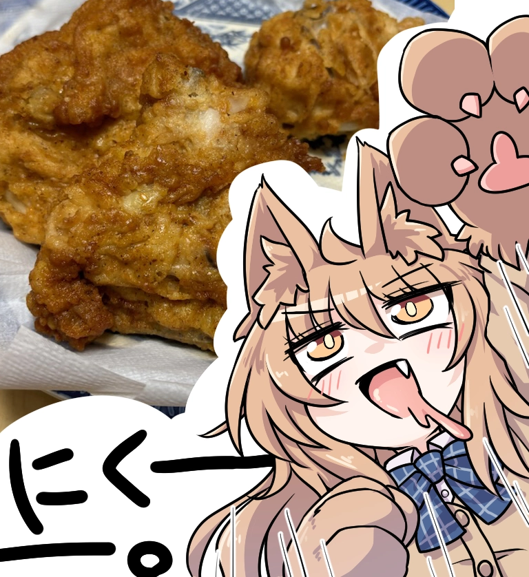 「からあげおいしいです。いぬのためにもっとつくっていいぞ。おかわりしょもうします」